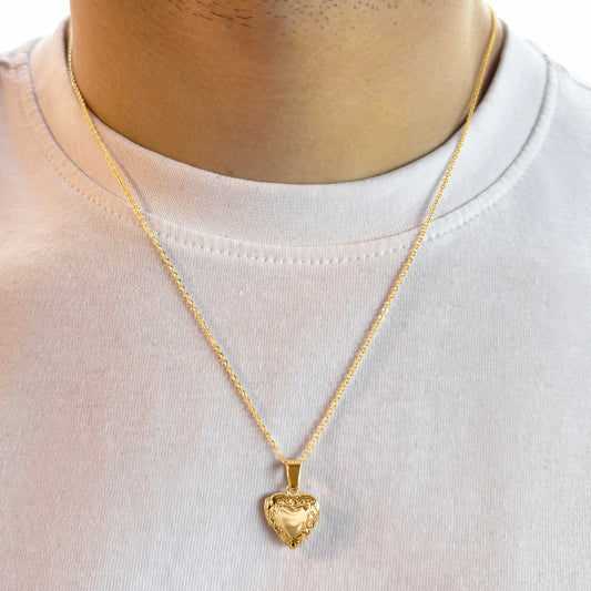 18k Gold-Plated Detailed Heart Locket on 17" chain