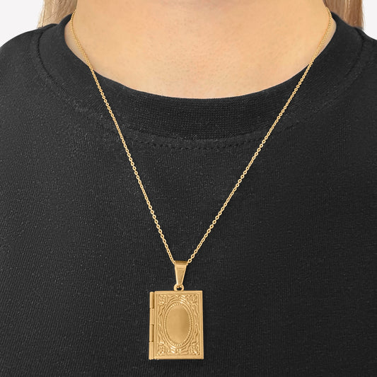 18K Gold-Plated Book Locket on Chain