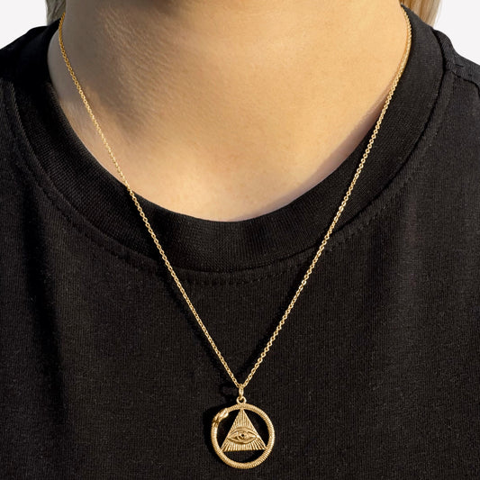 18k Gold-Plated Eye of Providence with Serpent Pendant on chain
