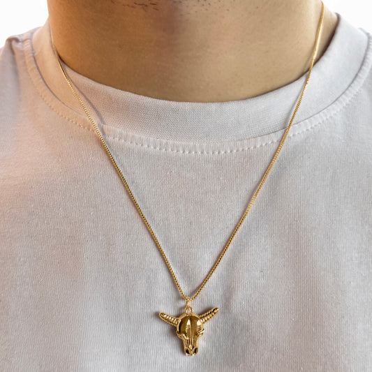 18k Gold-Plated Bull Skull Pendant on chain