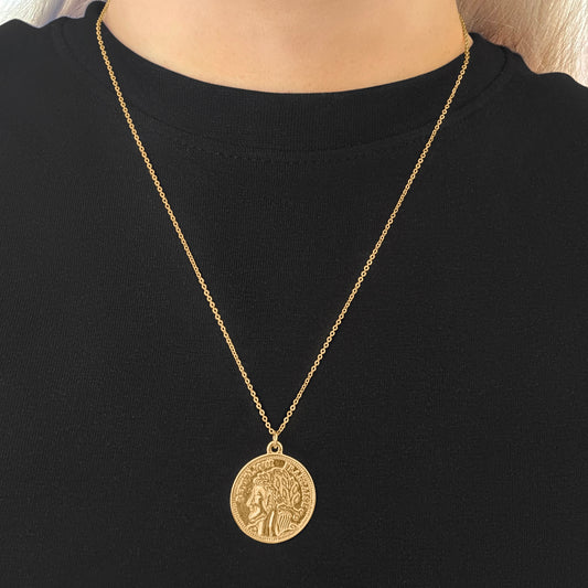 18k Gold-Plated French Coin Pendant on chain